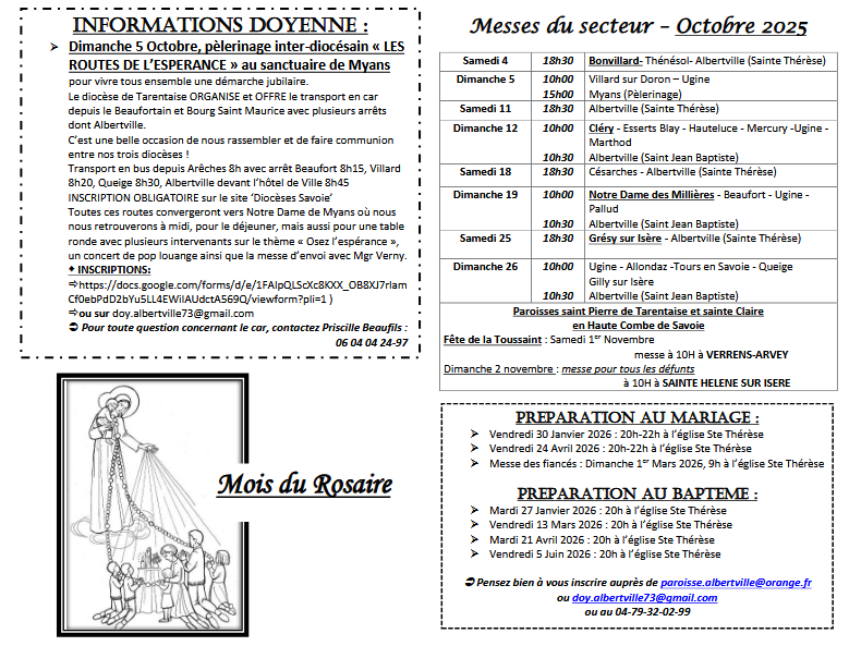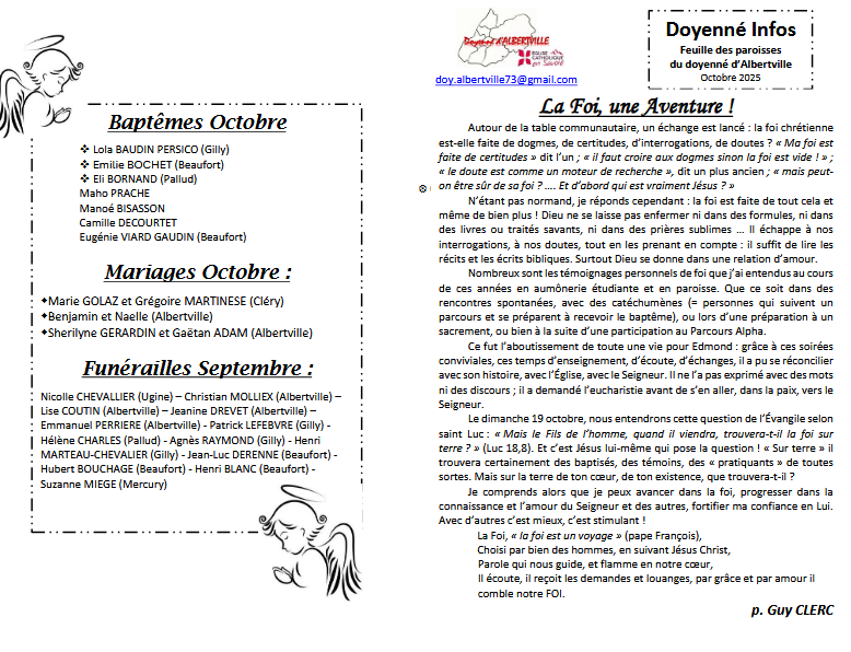 Lieux et horaires des célébrations et informations diverses , feuille du doyenné